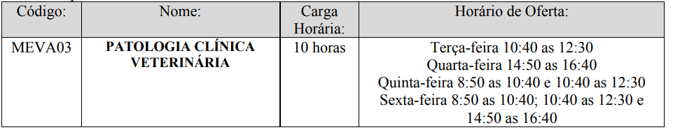- Formulário E - Resultado: Patologia Clínica Veterinária (clique aqui);
