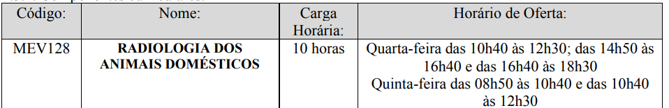- Formulário E - Resultado: Radiologia dos Animais Domésticos (clique aqui).
